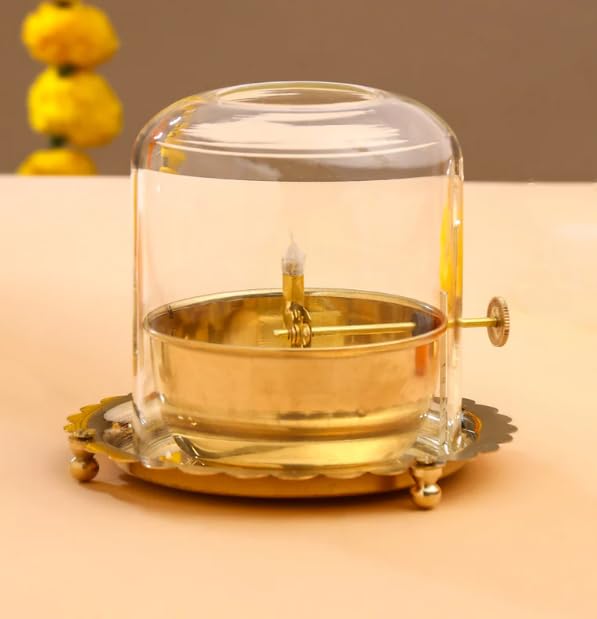 - UNINTERRUPTED FLAME(AKHAND JYOTI) – The diya is designed to stay lit for extended hours with a 250 ml oil capacity, which offers a continuous flame for up to 48 hours, making it ideal for daily prayers, festivals, ensuring a peaceful and illuminated spiritual atmosphere.